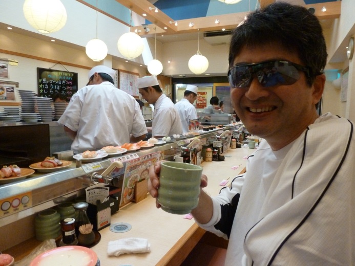 築地場外市場に到着。築地市場が日曜日は休みの影響で、築地場外市場は2/3程度がお休みでしたが、多くの人で賑わっていました。築地場外市場ではいつもより長めの休憩時間をとりました。各々好きなお店で食事となりました。いけさん、うおさん、五郎@CCAさんと「廻る すしざんまい」に入店。湯呑を持っている方が、おはロングのコースリーダーのいけさんであります。前回・前々回と雨でおはロングが中止となっています。次回は3度目の正直できっと晴れることでしょう。入店した「廻る すしざんまい」は回転寿司と侮れず。とても美味しく頂きました。「築地 すし一番」の店先ではまぐろの解体ショーが実施されていました。普段なかなか見られるものではないので貴重な体験でしたね。