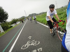 曇り空で風も涼しいので、基地沿いの直線ルートは一気に加速しても、皆平気に追随。自転車サイコーの気分です。