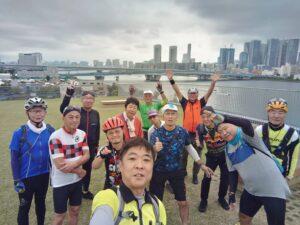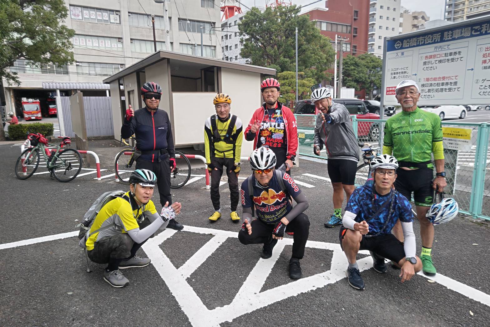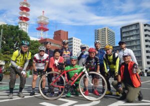 ・船橋市役所前での集合写真(石井さんチャリと一緒に撮影)