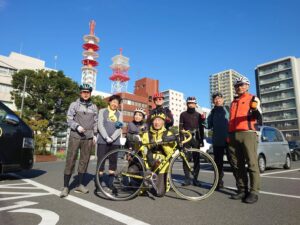 ・船橋市役所前での集合写真(Yellowbikeさんチャリと一緒に撮影)