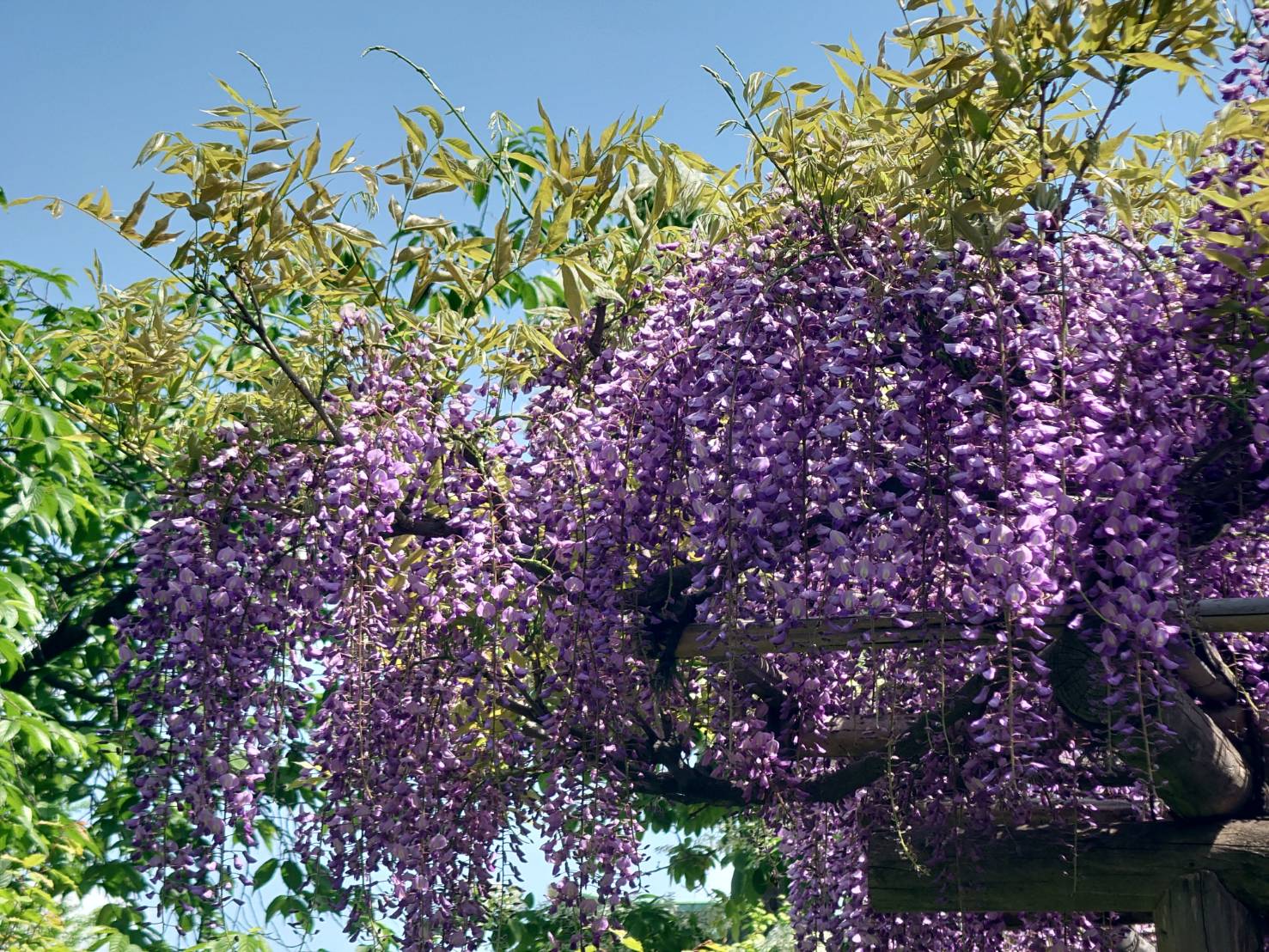 4月とは思えないほどの暖かな(暑い?)日の中、藤棚をみなさんと一緒に楽しみました。